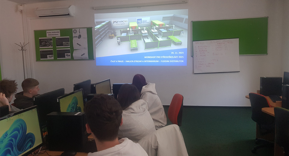Do školy přijel Ing. Pavel Scholz, zástupce společnosti FlexSim InterMarium pro Českou republiku a Slovensko, a představil studentům simulační software FlexSim, který využívají výrobní i logistické firmy po celém světě. Studenti měli možnost navázat spolupráci a získat studijní licence, díky nimž mohou s programem pracovat i dlouhodobě.